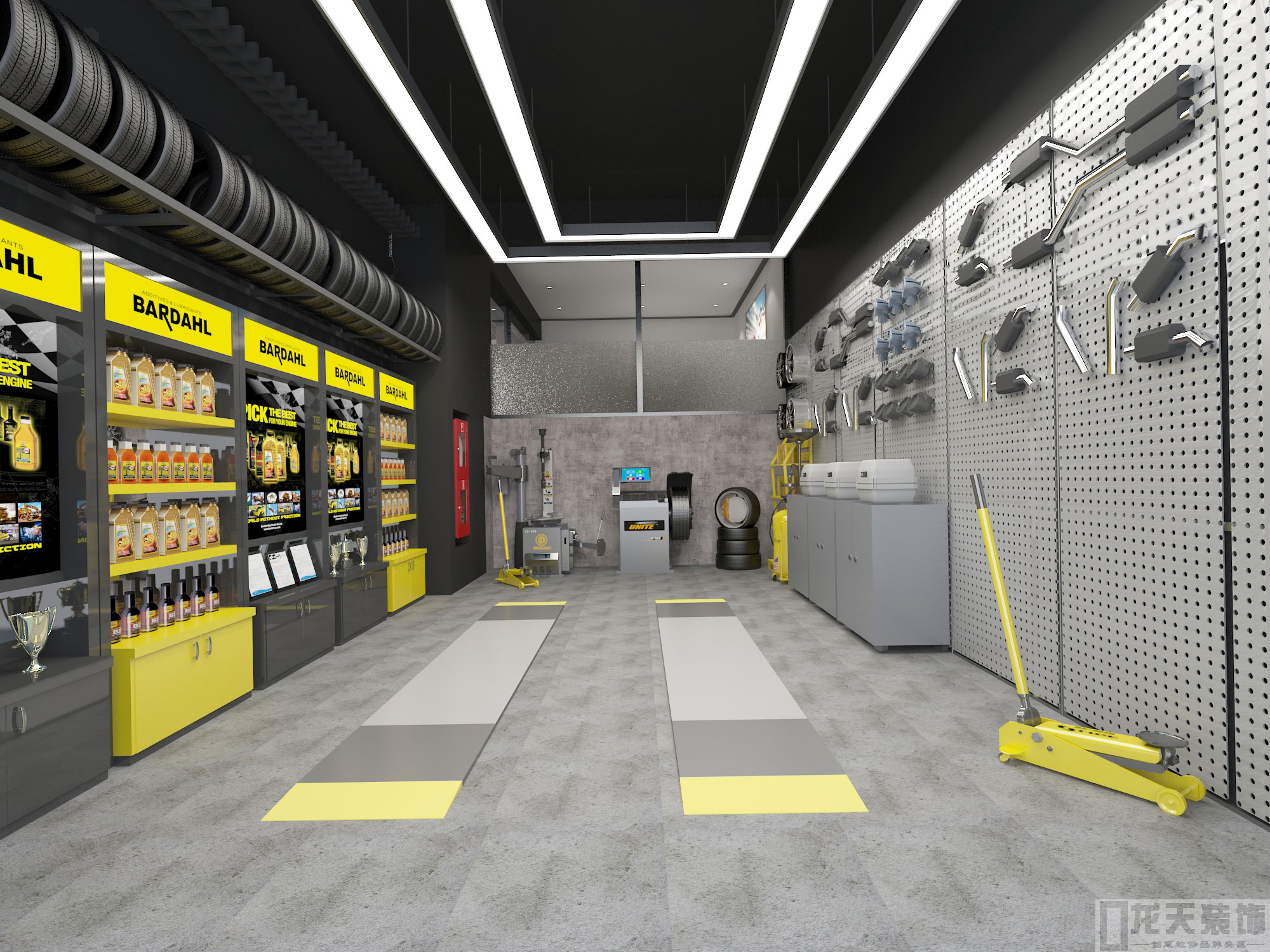• 龍天裝飾使用的所有材料是針對工裝的品牌,專業工裝燈光